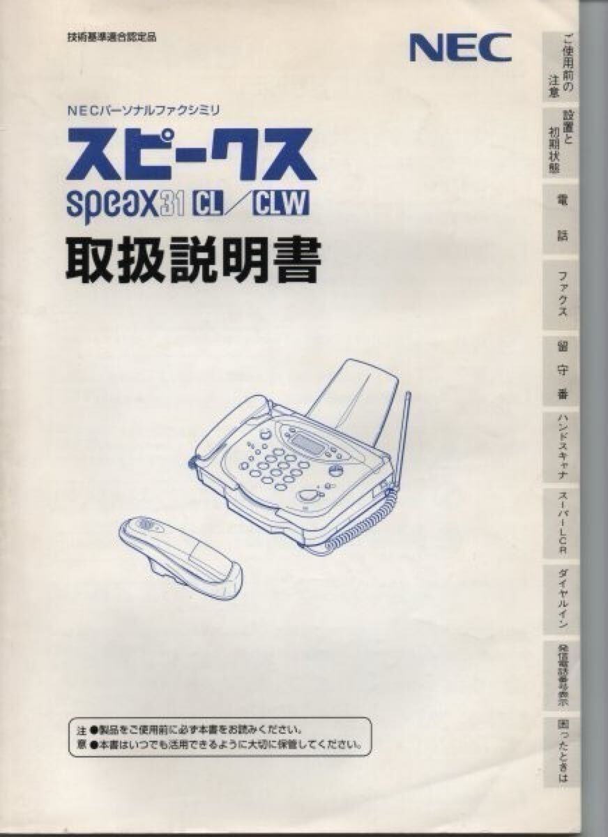 - ファックス NEC speax31CL/CLW [取扱説明書]