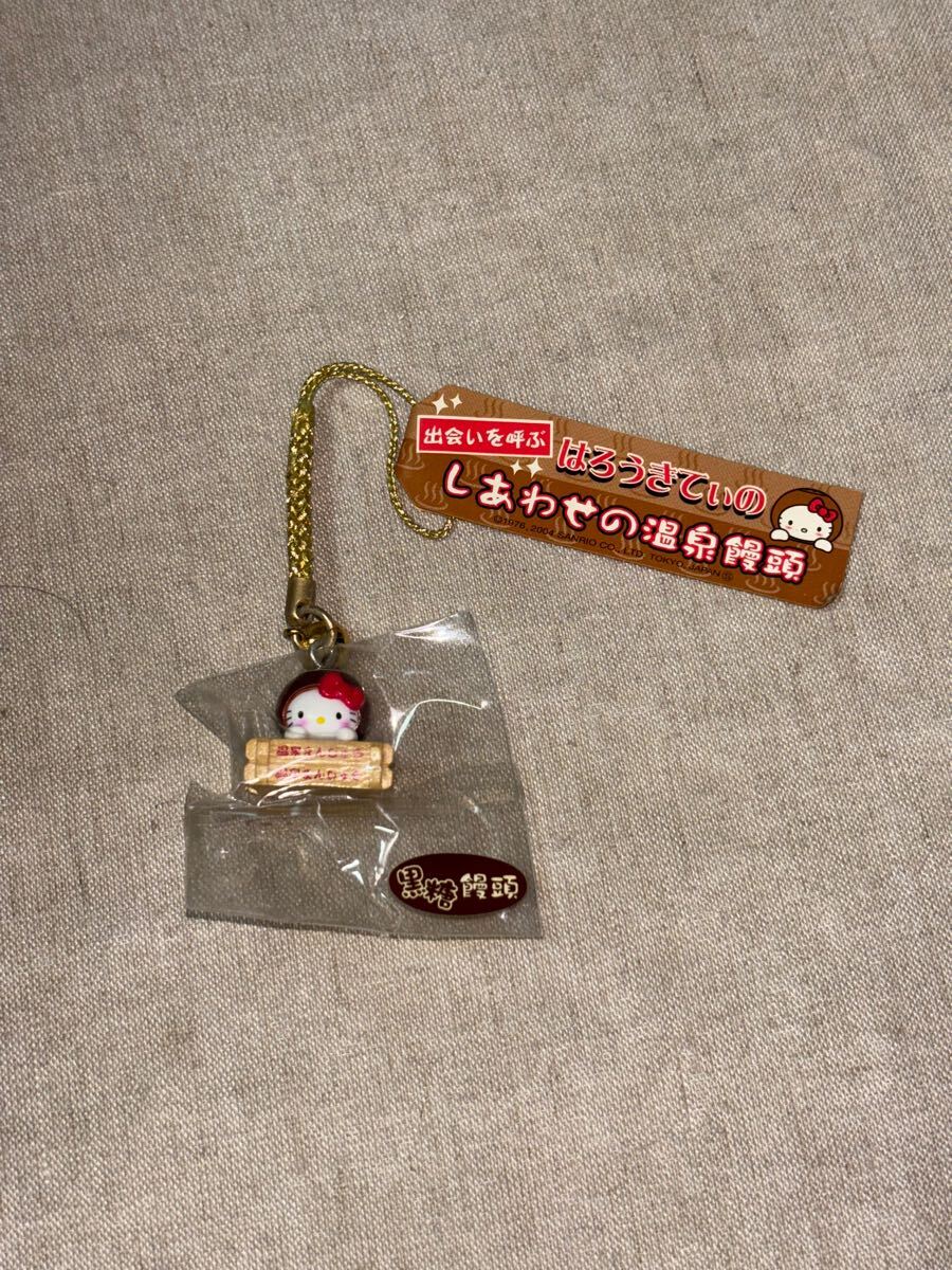 - 出会いを呼ぶはろうきてぃのしあわせの温泉饅頭根付け・・・黒糖饅頭