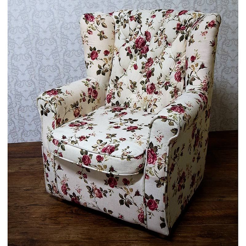 - お姫様ソファ キッズソファ 一人掛け ローズ 薔薇柄 ウィングソファ 姫家具 ロココ調 クラシカル ヨーロッパ家具