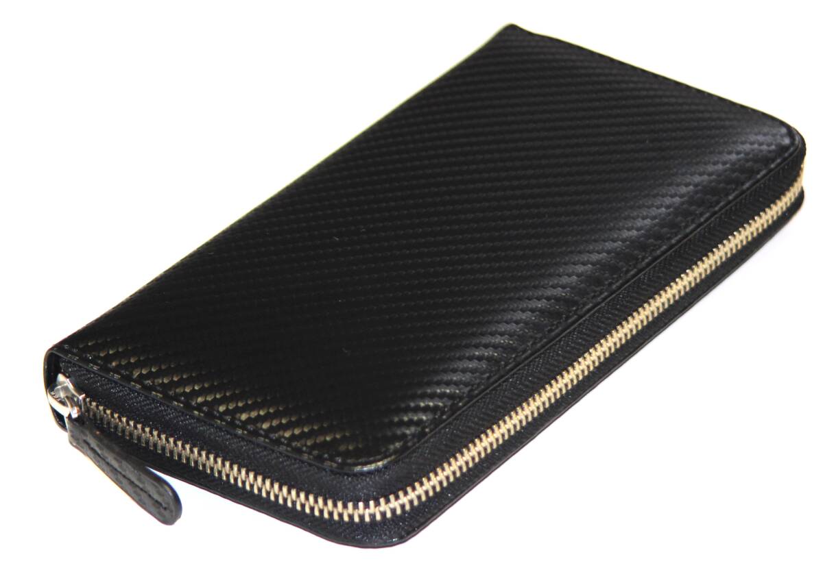 > 【今月イチオシ限定SALE】【送料込み】【激安】【新品】【税込み】カーボンレザー 牛革 インナーレッドカラー ラウンドロングウォレット