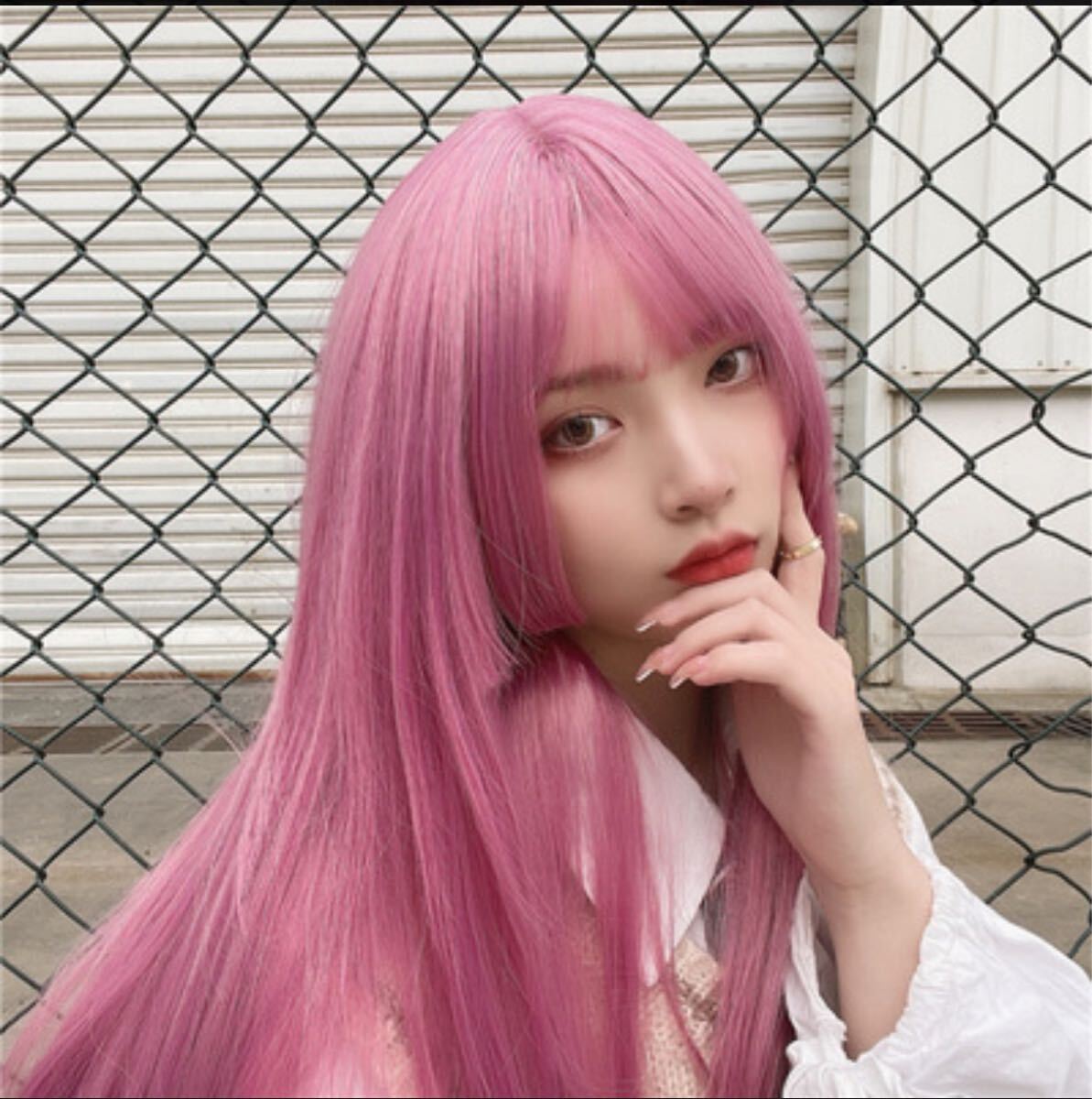 - 姫カット コスプレ ウィッグ ロングウィッグ ロングヘア ピンクパープル 可愛い 変身 フルウイッグ イベント パーティー