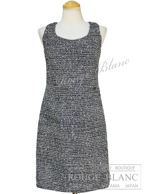 - 未使用品 タグ付 シャネル 15C ツィードワンピース スパンコール ブラック×エクリュ #34 CHANEL ココマーク ツイード 黒