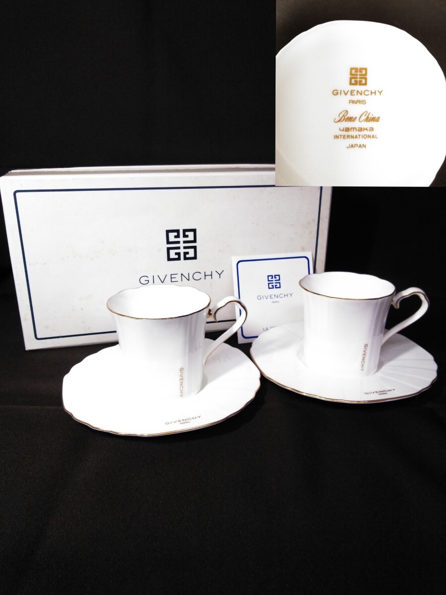 > GIVENCHY コーヒーカップ ペア セット 茶器 紅茶 ティーカップ ソーサー 在銘 (検索) 茶会 洋食器 ジバンシー 煎茶 金彩 菓子 紅茶茶碗