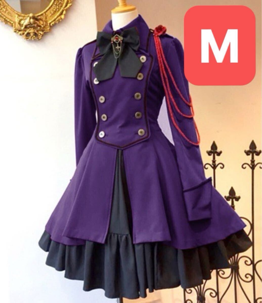 - 膝丈ワンピース 軍服 ロリータ ワンピース ゴスロリ ドレス トレンド ストリート コスプレ 衣装 人気 パープル 紫 バイオレット M