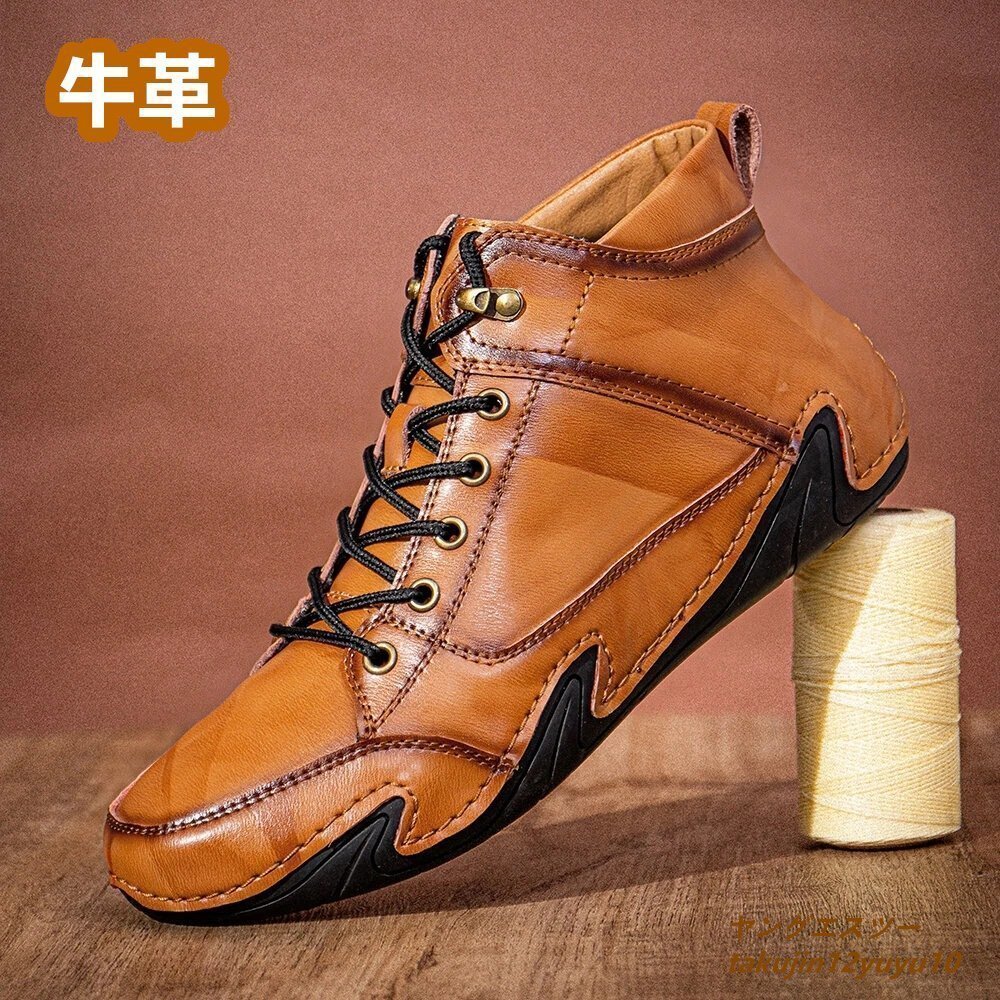 - 特売◆ショートブーツ 本革 レザーシューズ メンズ 牛革 スニーカー カジュアルシューズ ハイカット 柔らか 歩きやすい靴 ブラウン 26.0cm