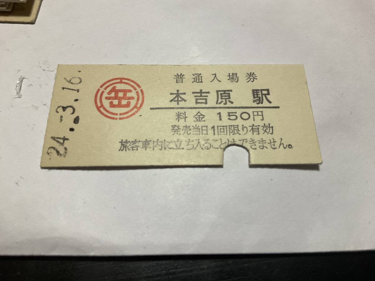 - 【切符】硬券 岳南鉄道 本吉原駅 普通入場券 150円 入鋏済 平成24年