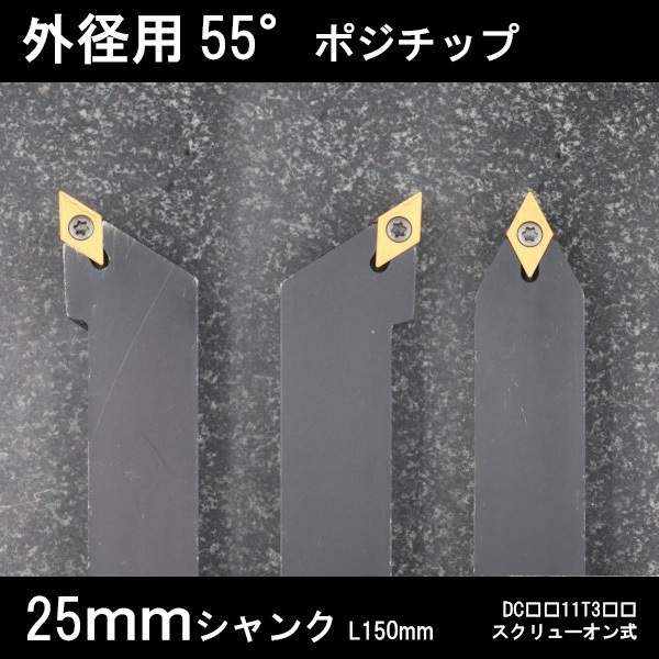 - スローアウェイバイト 外径用55°チップ 25mm 3本セット 旋盤