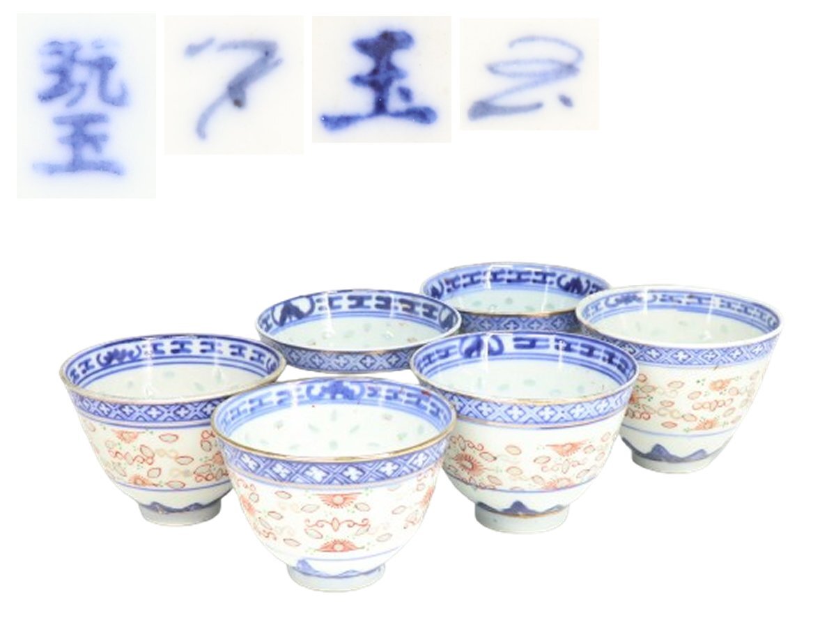 - 【蔵】中国茶器 景徳鎮 玩玉 蛍焼 染付 煎茶碗6客 Y2418F
