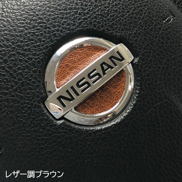 - 日産 ステアリング エンブレムシート レザー調 革調 ブラウン ハンドル用 SDH-N01 NISSAN ZEROWIN