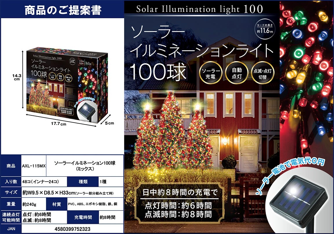 - ソーラーイルミネーションライト 100球 ミックスカラー クリスマス