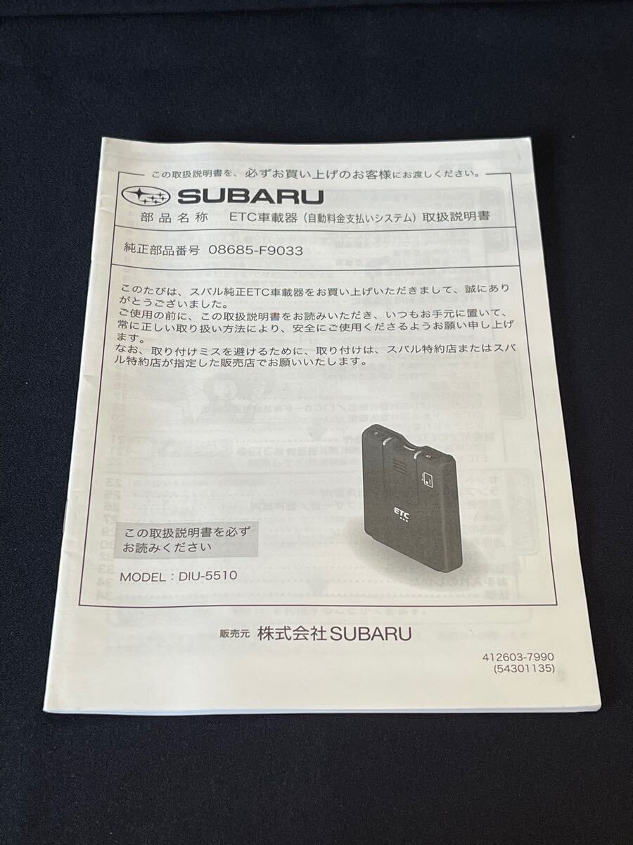 - 取扱説明書 SUBARU純正ETC車載器: MODEL : DIU-5510 取説 取扱書 No.B49
