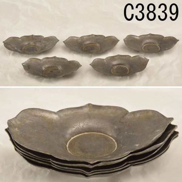 - C03839 公茂字號 錫製茶托5枚 約269g:真作
