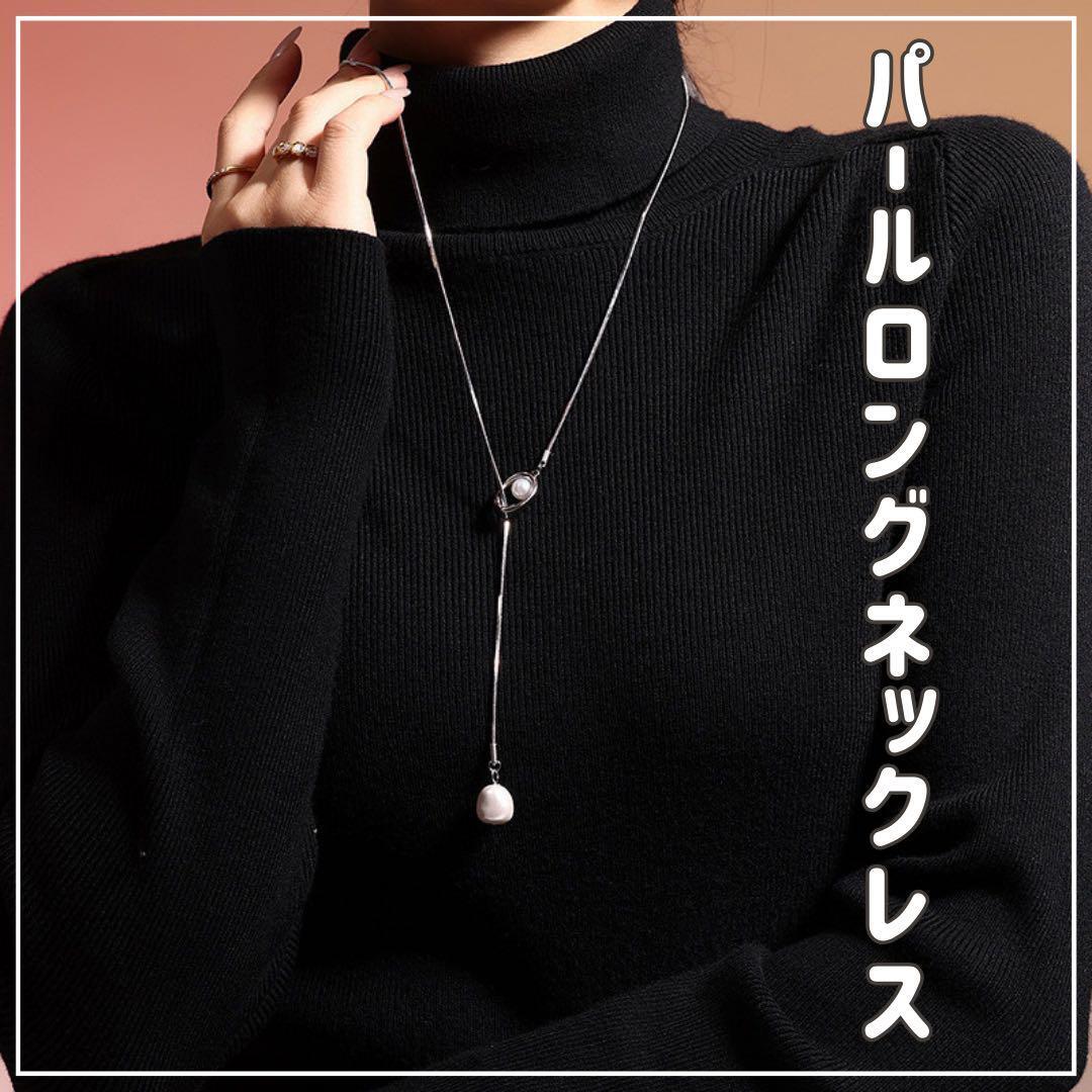 - 【シルバー】パール ロングネックレス ステンレス 調整可能 レディース 高見え