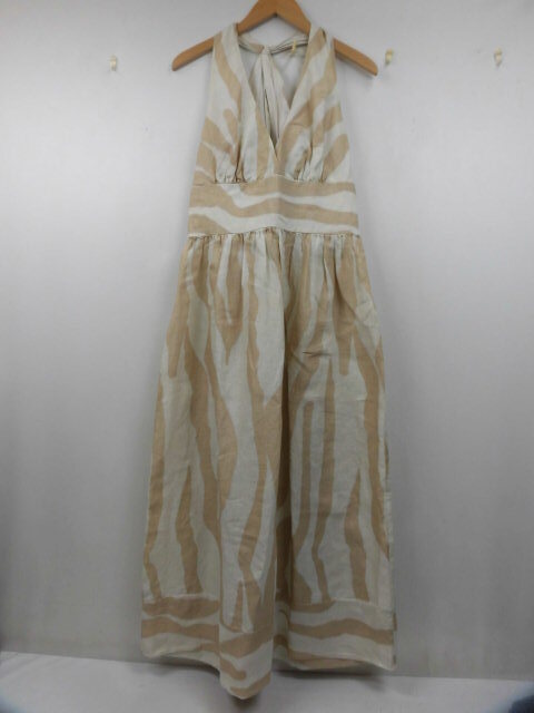 - BANANA REPUBLIC バナナリパブリック 総柄 ノースリーブ ロングワンピース ロングフレアスカート ベージュ サイズ10
