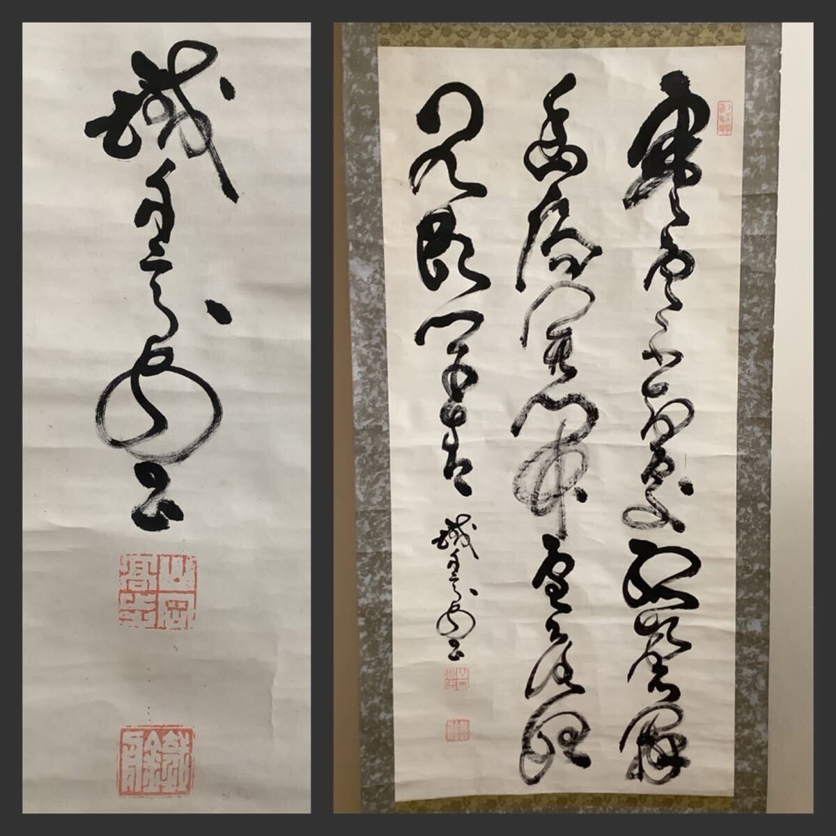 - 【模写】大幅掛軸Nov629L[山岡鉄舟 三行書]紙本 書いたもの/書画 古書 幕臣 剣術家 官僚 政治家 高歩 幕末三舟