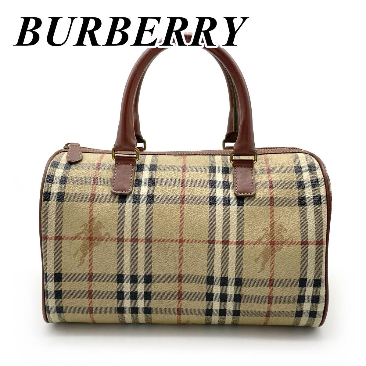 - バーバリー ミニボストン ハンドバッグ ノバチェック PVCレザー