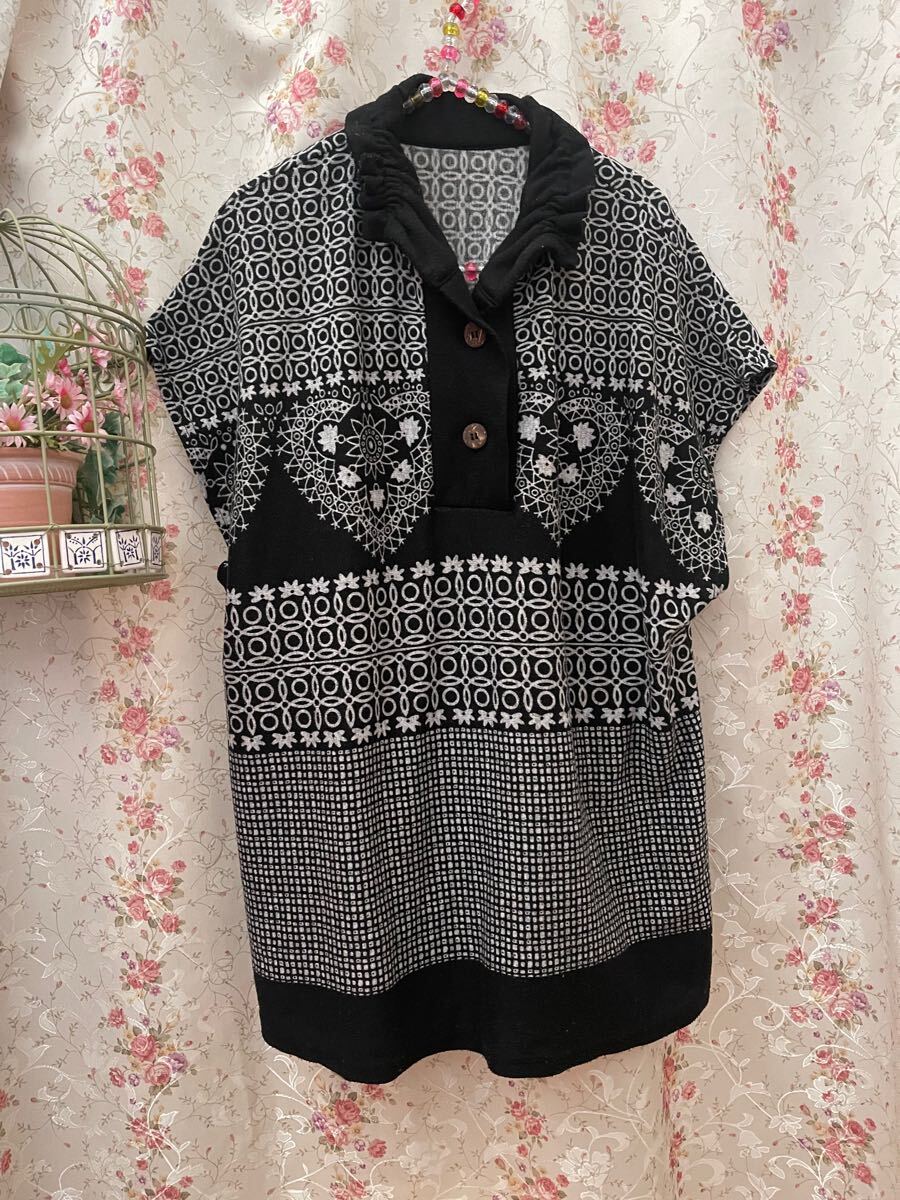 - おしゃれ 黒 グレー 柄 チュニック ベスト トップス 前ボタン チュニック フリー M 〜L