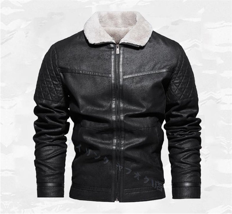 > ☆新品 ライダース ジャケット 裏ボア 裏フリース ブルゾン バイク バイカー アウター ショートコート メンズ クロ XL