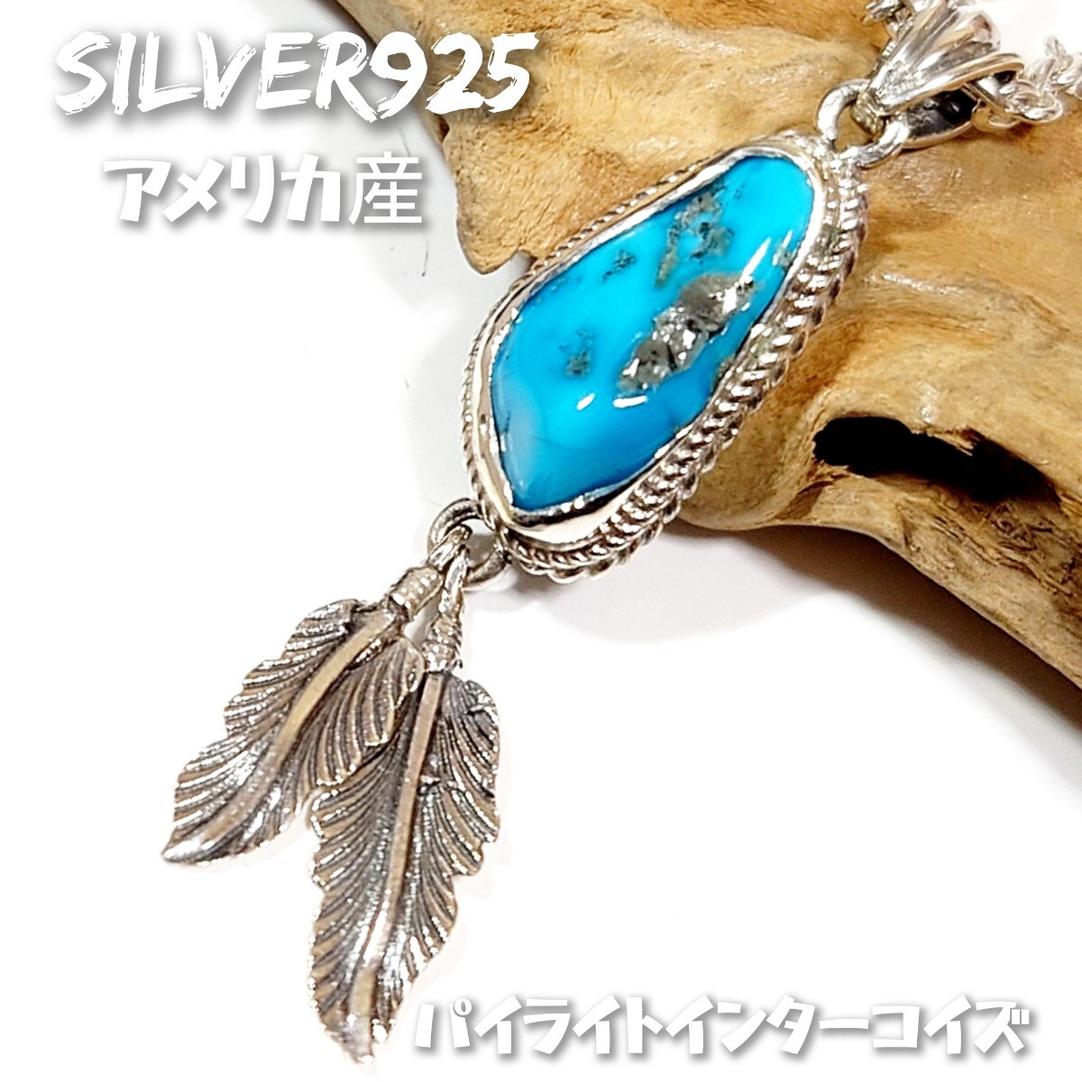 > 6243 SILVER925 アメリカ産 ターコイズフェザートップ シルバー925 天然石 パイライトイン 羽根 インディアンジュエリー ヴィンテージ
