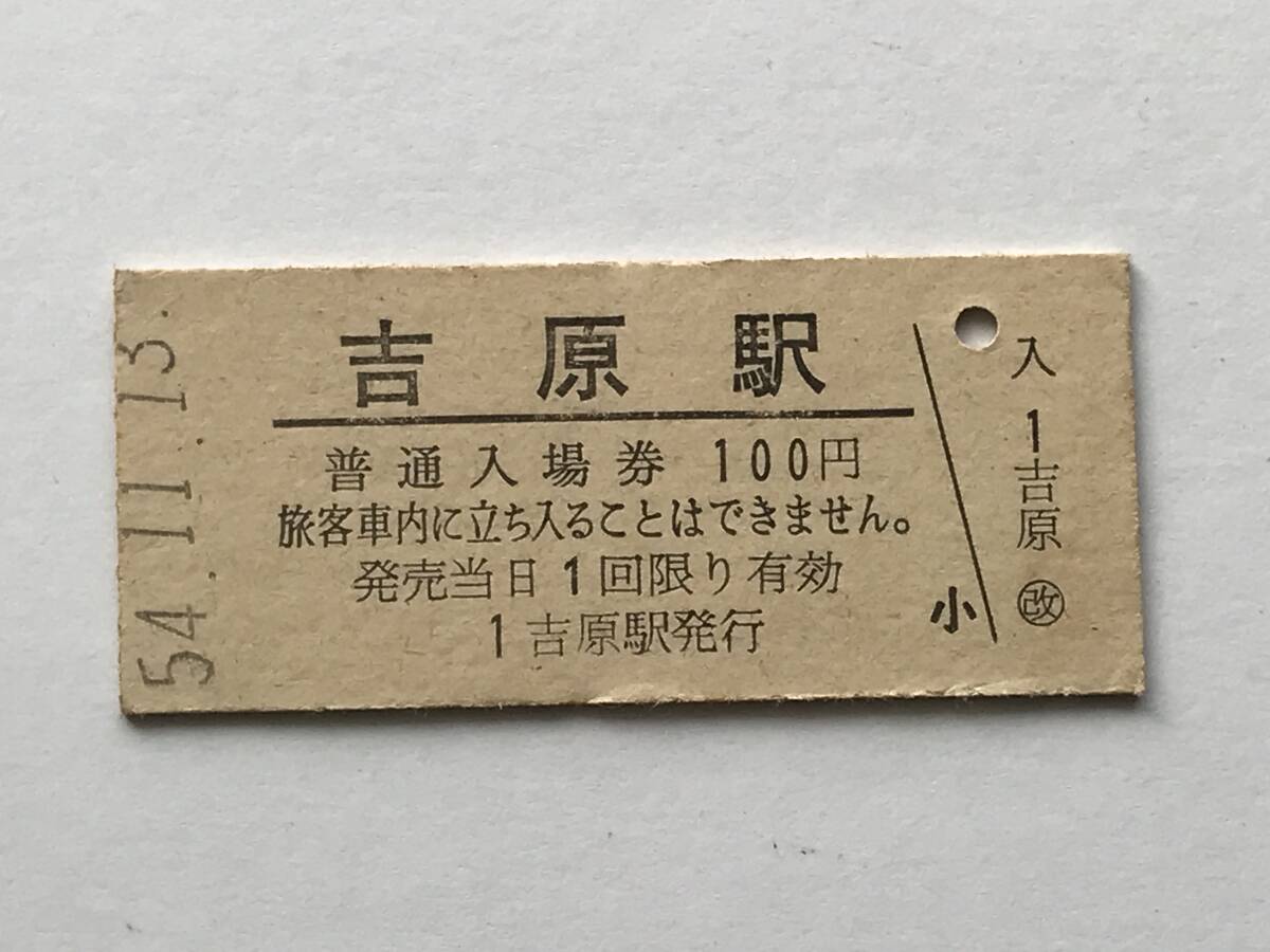 > 昔の切符 きっぷ 硬券 吉原駅 普通入場券 料金100円 サイズ:約2.5×約5.8㎝ S54 HF5359 くるり 岸田繁