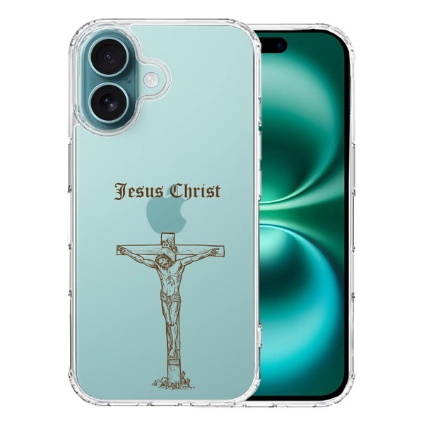> iPhone16 ケース クリア イエス キリスト様 スマホケース 側面ソフト 背面ハード ハイブリッド