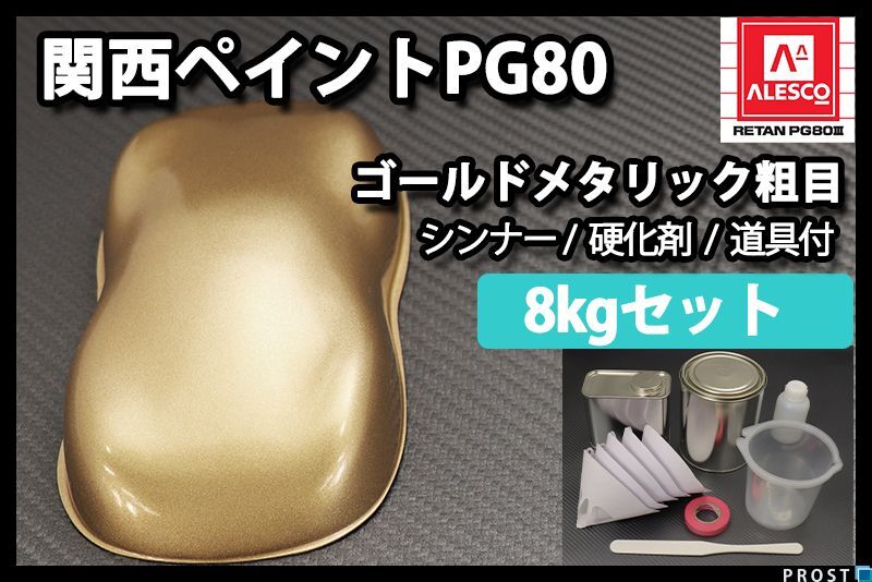 - 関西ペイントPG80 ゴールドメタリック 粗目 8kgセット(シンナー/硬化剤/ 道具付) 自動車用ウレタン 2液 カンペ 塗料 金 金色 Z26