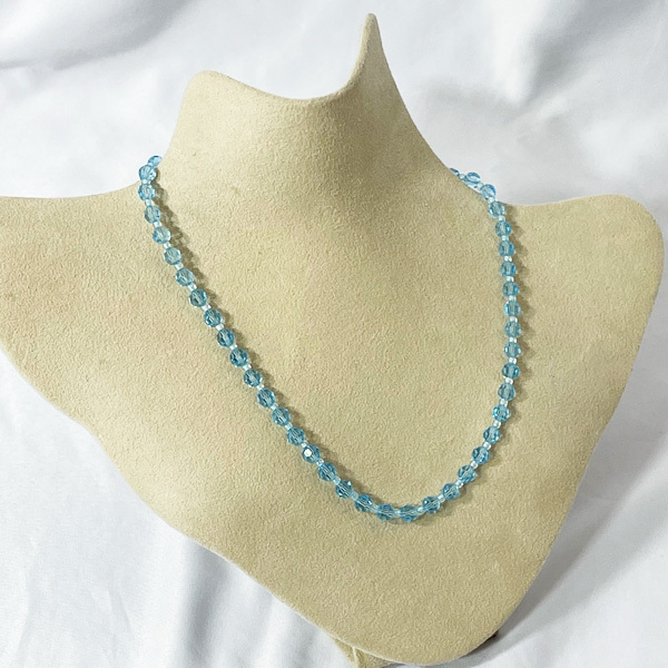 - 送料無料! ブルー クリスタル ビーズ ネックレス 44cm かわいい カジュアル 涼しい 青 クリア ◇N-0074