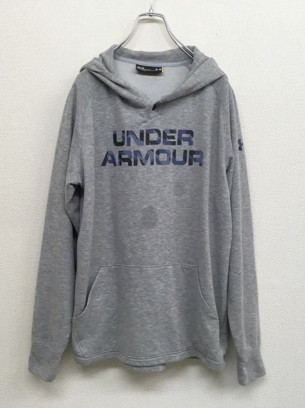 > UNDER ARMOUR アンダーアーマー スウェットパーカー プルオーバーパーカー グレー メンズ Mサイズ ビッグロゴ