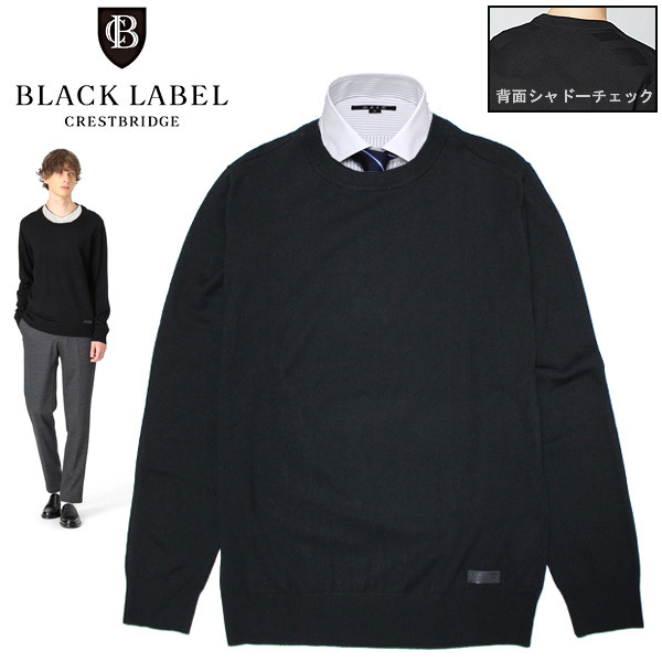 - 定価2.8万 L(3) 新品 ブラックレーベル クレストブリッジ 背面シャドーチェック ウール 毛 ハイゲージニット 黒 BLACK LABEL CRESTBRIDGE