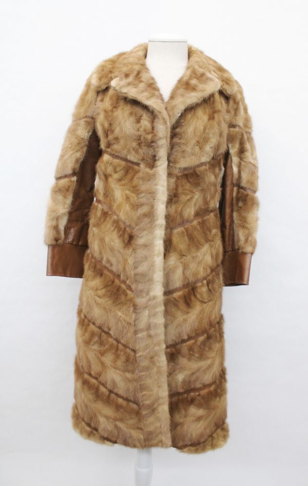 - カナディアン パステル・ミンク毛皮ファー&レザー・コート アメリカンサイズ2-4