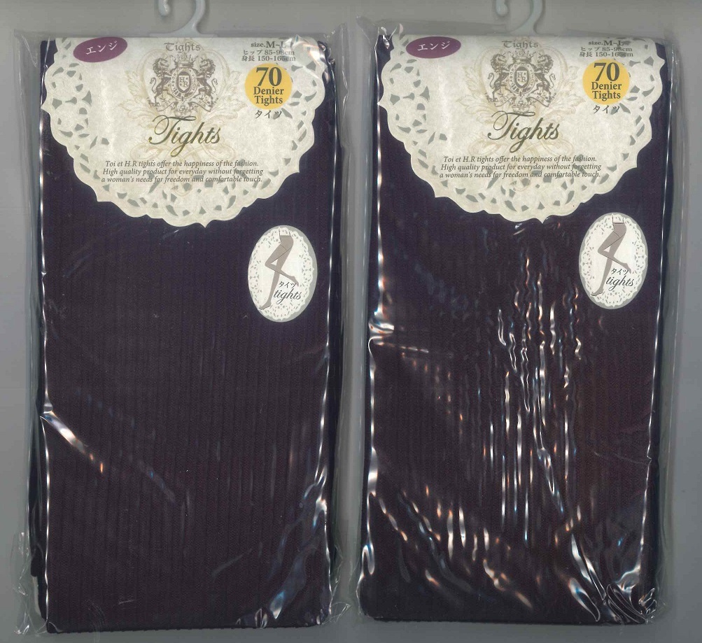 - 送料無料 2枚SET/ワンコイン500円セール 70デニール リブ編みデザイン エンジ色 タイツ FTT059R