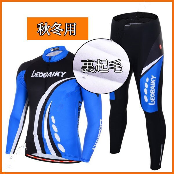 > 秋冬用 裏起毛 サイクルジャージ 上下2点セット サイクリング裏ウエア 自転車 フリース ロング スーツ メンズ ・3XLDJ397