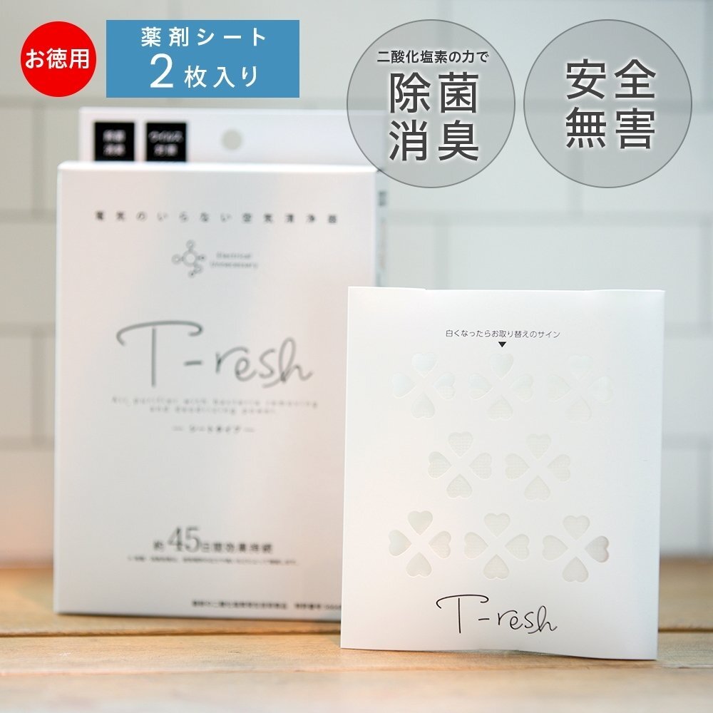 - 【電気のいらない空気清浄器】★天女Style T-resh シートタイプ(貼り付け用)【2個セット】★純粋二酸化塩素で消臭効果&除菌効果