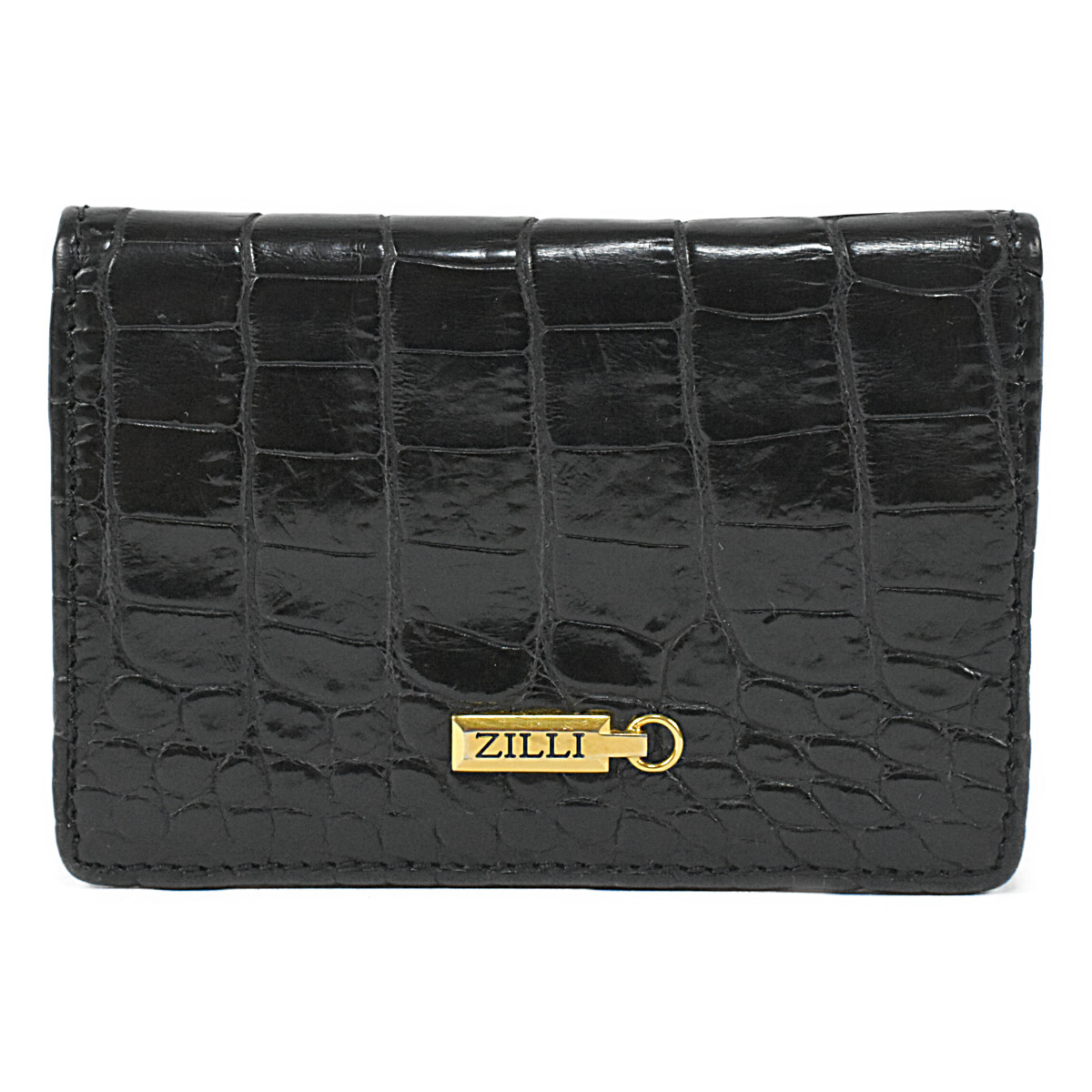 - ジリー 超豪華 クロコダイル 無双仕立て カードケース 名刺入れ ジリ 世界で最高の衣 黒 ゴールド金具 ZILLI