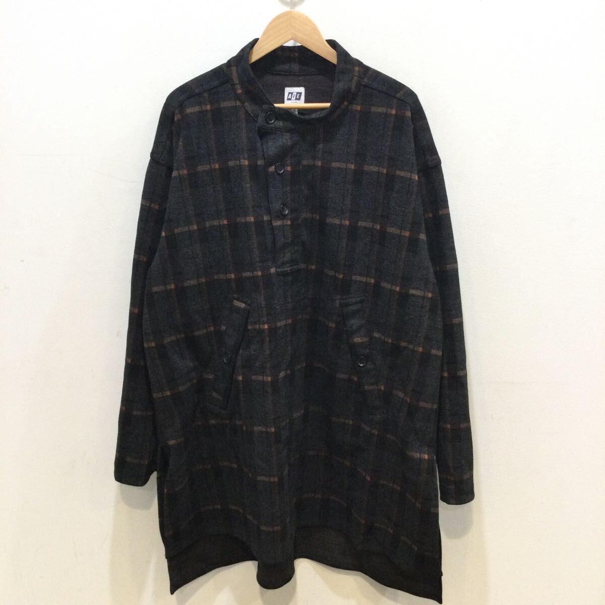 - AIE エーアイイー CHECK BAND COLLOAR SHIRT JACKET バンドカラー チェックシャツ ロング ジャケット ブラウン Sサイズ 655353