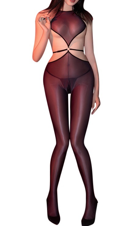- 新作 セクシー 悩殺 光沢 シースルー オープンクロッチ仕様 ボディストッキング レオタード ベビードール ナイトウェア 黒
