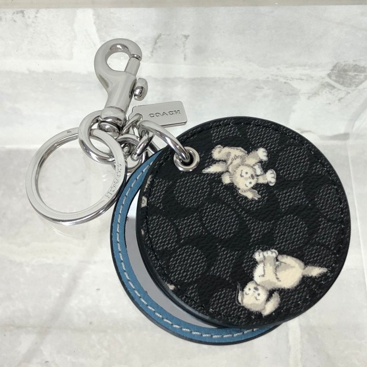 - COACH コーチ ミラー バッグ チャーム シグネチャー キャンバス ハッピー ドッグ プリント ブラック/ブルー LU632024111606