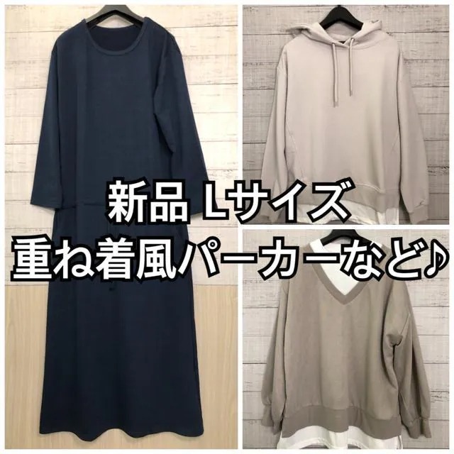 - 新品☆L♪リラックスワンピや重ね着トレーナーなど3枚☆y559