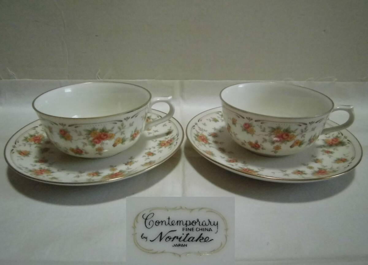 - カップ&ソーサー Noritake ノリタケ コンテンポラリー ティーカップ 花柄 2客 金彩 日本陶器会社 工芸品 茶器 レトロ A