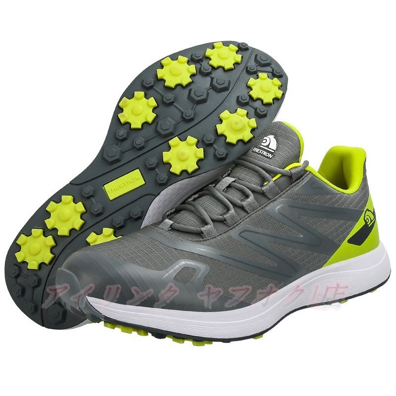 - ☆新品ゴルフシューズ スポーツシューズ 強いグリップ 運動靴 切替 メンズ 幅広 紳士 スニーカー 防滑 耐磨 通気性 灰 緑 24.5~28.5