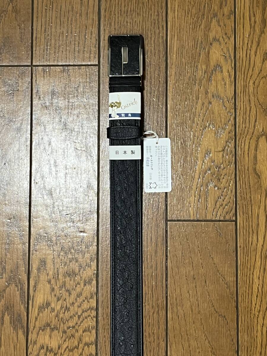 - 【質屋 尾張屋商店 東京】(4905) ☆未使用☆ オーストリッチ ベルト 日本製 スライドバックル