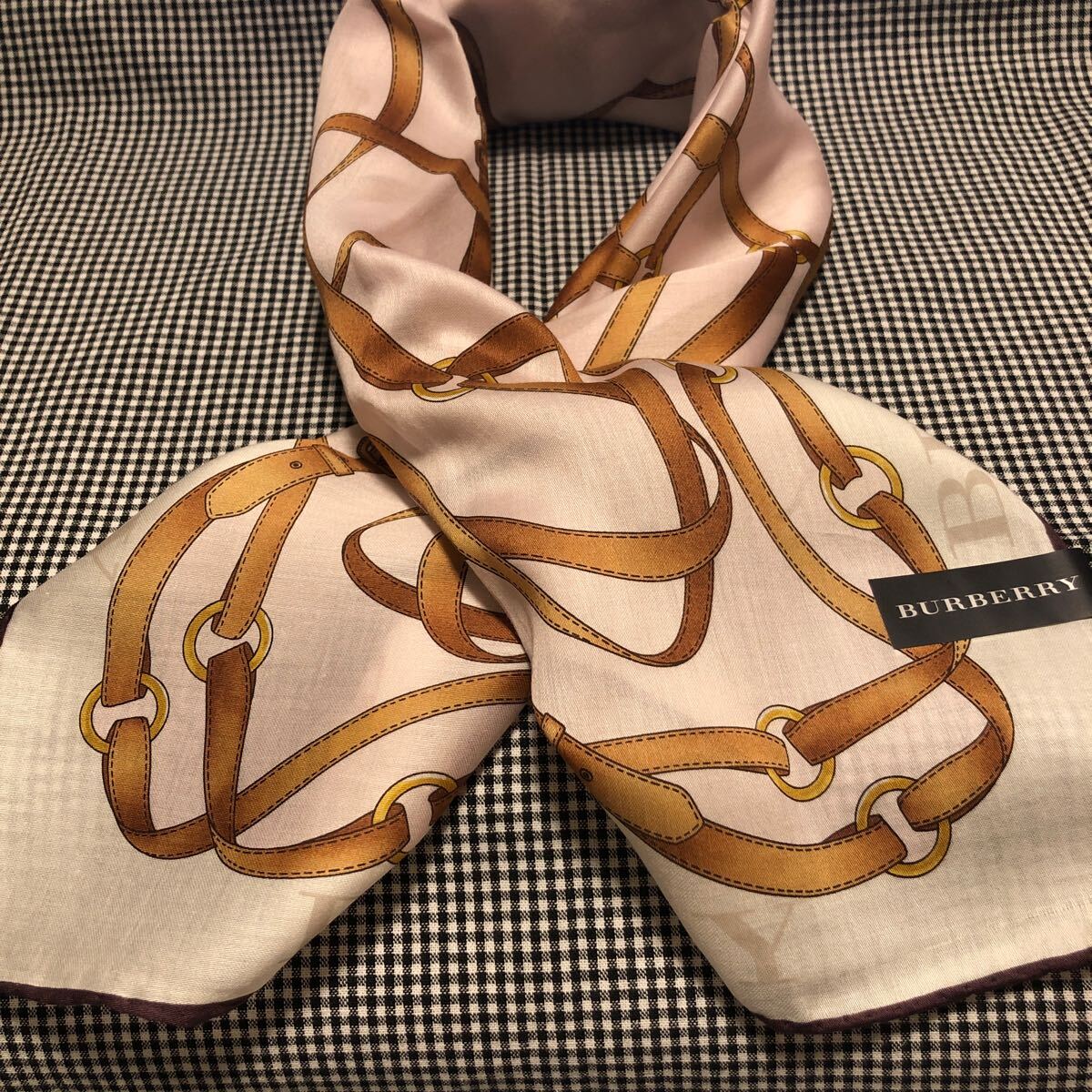 - レア 新品 バーバリー ハンカチ 大判58㎝ ロゴ字&ベルト柄 BURBERRY 未使用