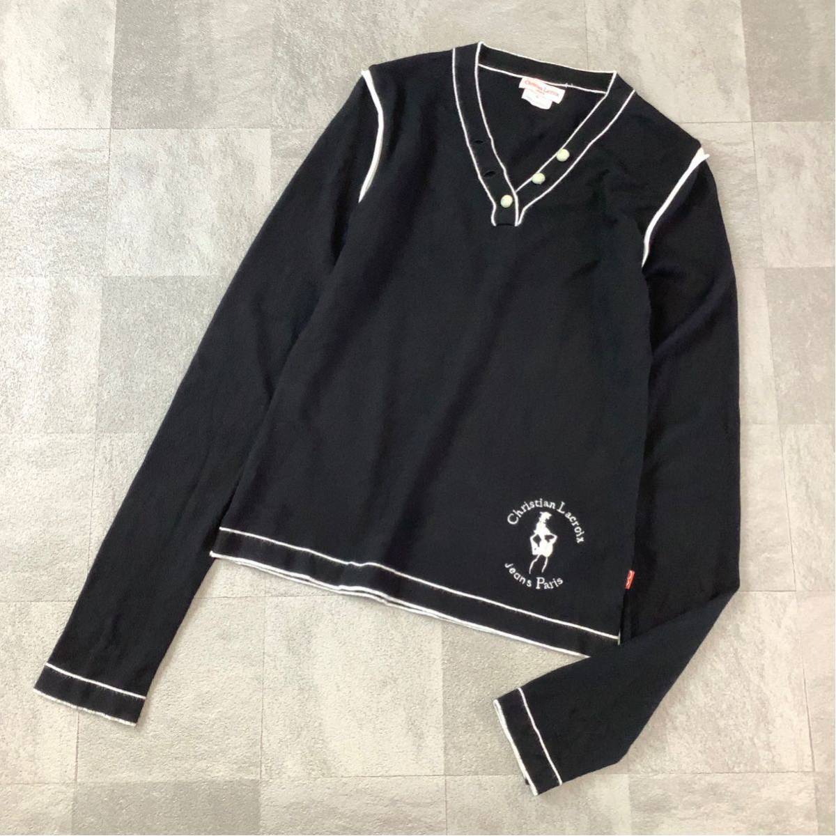 > 良品 Christian Lacroix クリスチャンラクロワ デザインボタン ニット カーディガン レディース Sサイズ ブラック 黒
