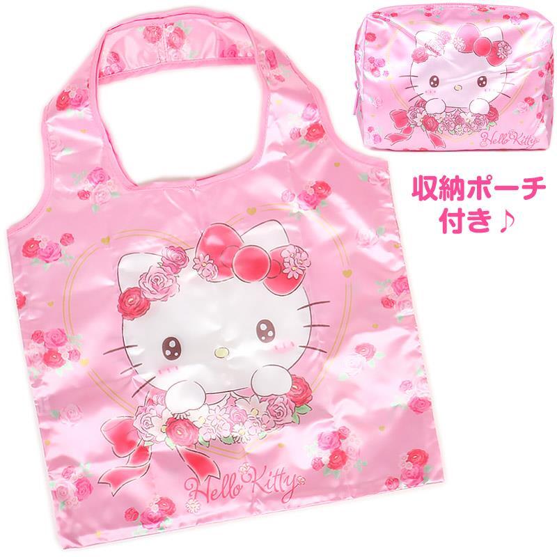 - ハローキティ エコバッグ 折りたたみ サテン 収納ポーチ付き ピンク マイバッグ サンリオ sanrio キャラクター