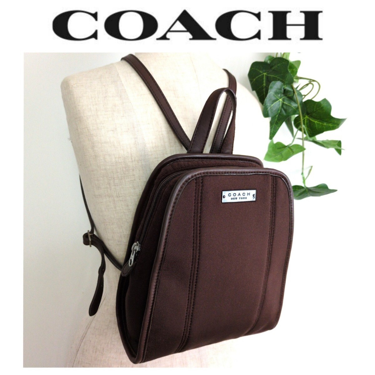 > 良品 コーチ ジャージ素材 レザー リュック ヴィンテージ デイパック バックパック 軽量 バッグ 鞄 ブラウン 茶色 COACH レディース メンズ