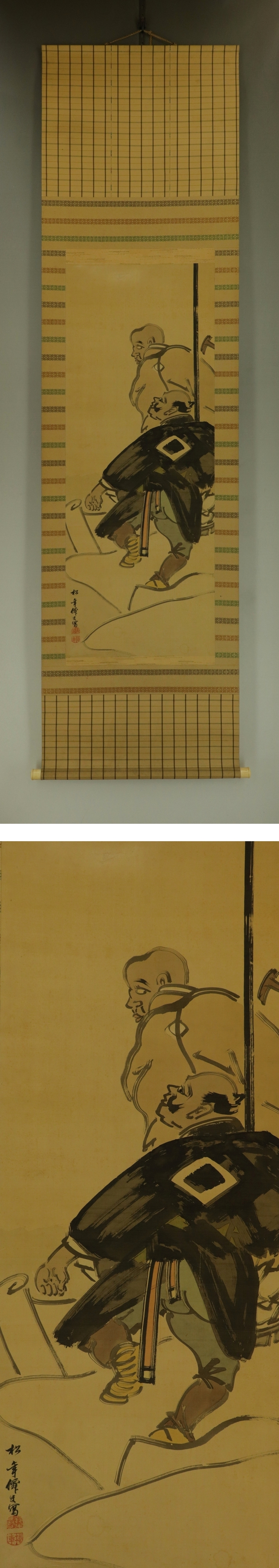 - 【模写】鈴木松年【大津絵】◆絹本◆福年識箱◆二重箱◆掛軸 s09050
