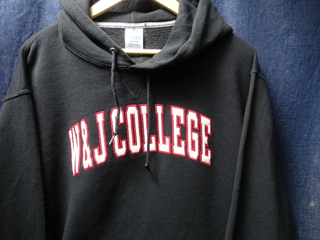 > USA アメリカ 古着 RUSSELL ラッセル ワッペンロゴ リバースタイプ 長袖 カレッジ スウェット パーカー M 黒 / スエット パーカ / 23