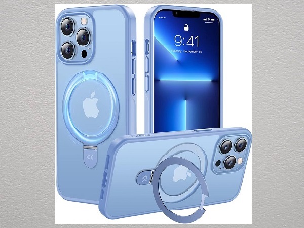 > CASEKOO iPhone14 13 用 ケース ライトブルー 新品 隠しスタンド 横縦両立 米軍MIL規格 耐衝撃 MagSafe対応 ワイヤレス充電対応 6.1インチ