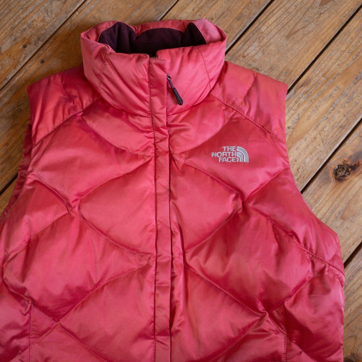 - USA古着 THE NORTH FACE グースダウンベスト レディース Mサイズ ピンク フルジップ 550フィルパワー 保温性 あったかい アウトドア J3724