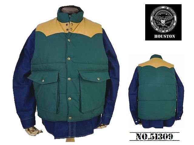 > 【送料無料 33%OFF】HOUSTON ヒューストン N/C PADDING VEST / ナイロン×コットン 中綿ベスト NO.51309 GREEN_Lサイズ